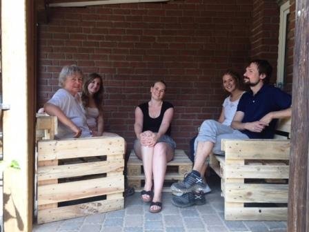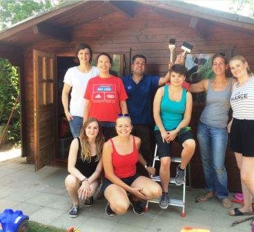 Im letzten Monat waren Mitarbeiter der Firma Baker Hughes a GE Company hier im Haus, um eine soziale Einrichtung für zwei Tage zu unterstützen. Dabei wurde unser Garten verschönert. Es gibt nun ein Hochbeet für Kräuter und eine gemütliche Ecke mit selbstgebauten Möbeln aus Paletten. Fleißig hämmerten, malten und sägten 10 Kolleg_innen miteinander. Die Bewohnerinnen kochten für alle. Die Kinder staunten und halfen, wo sie konnten. Nun ist das Gartenhaus wieder frisch gestrichen, die Hecke gestutzt und der Rasen gemäht. Es sieht sehr schön aus. Vielen Dank dafür!