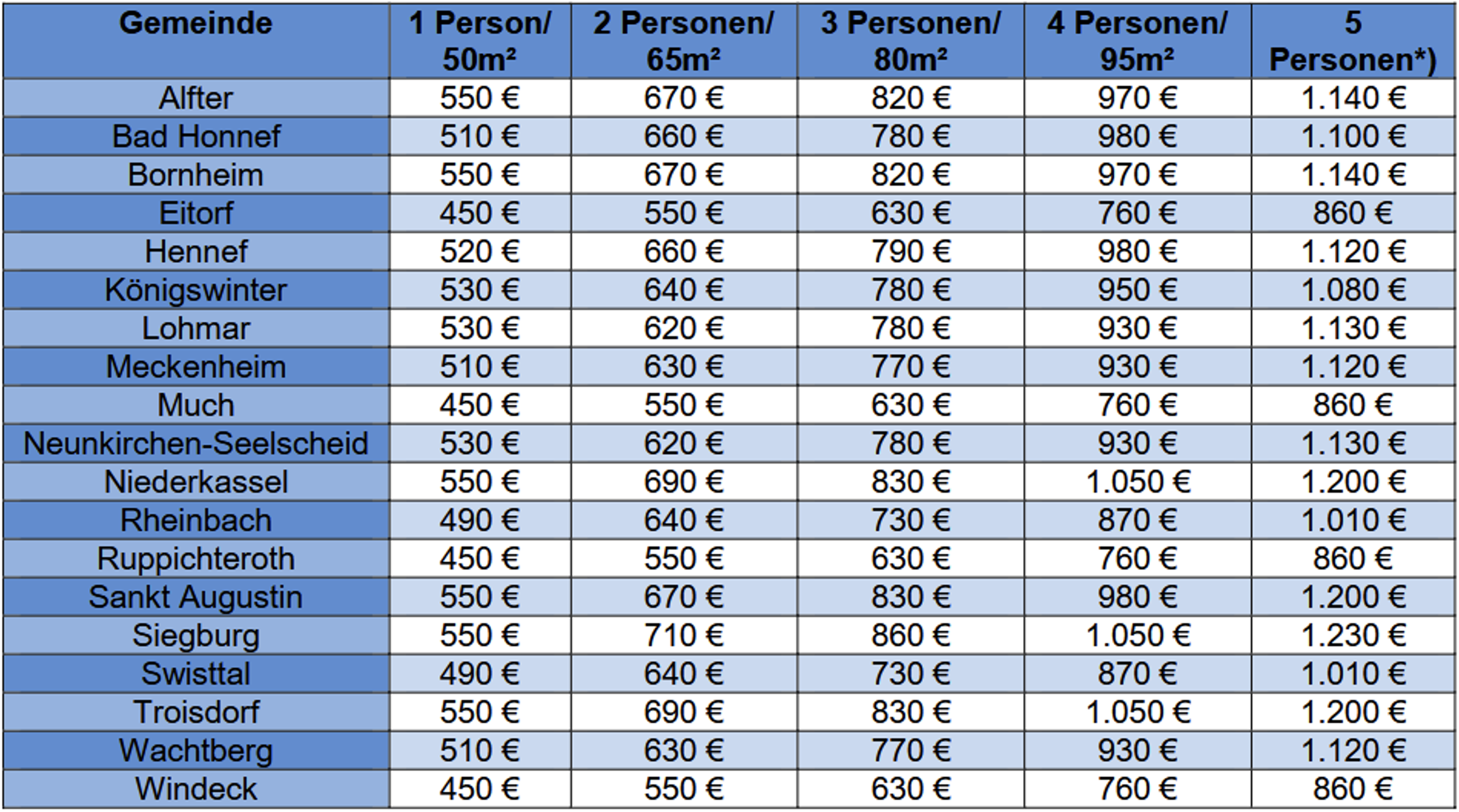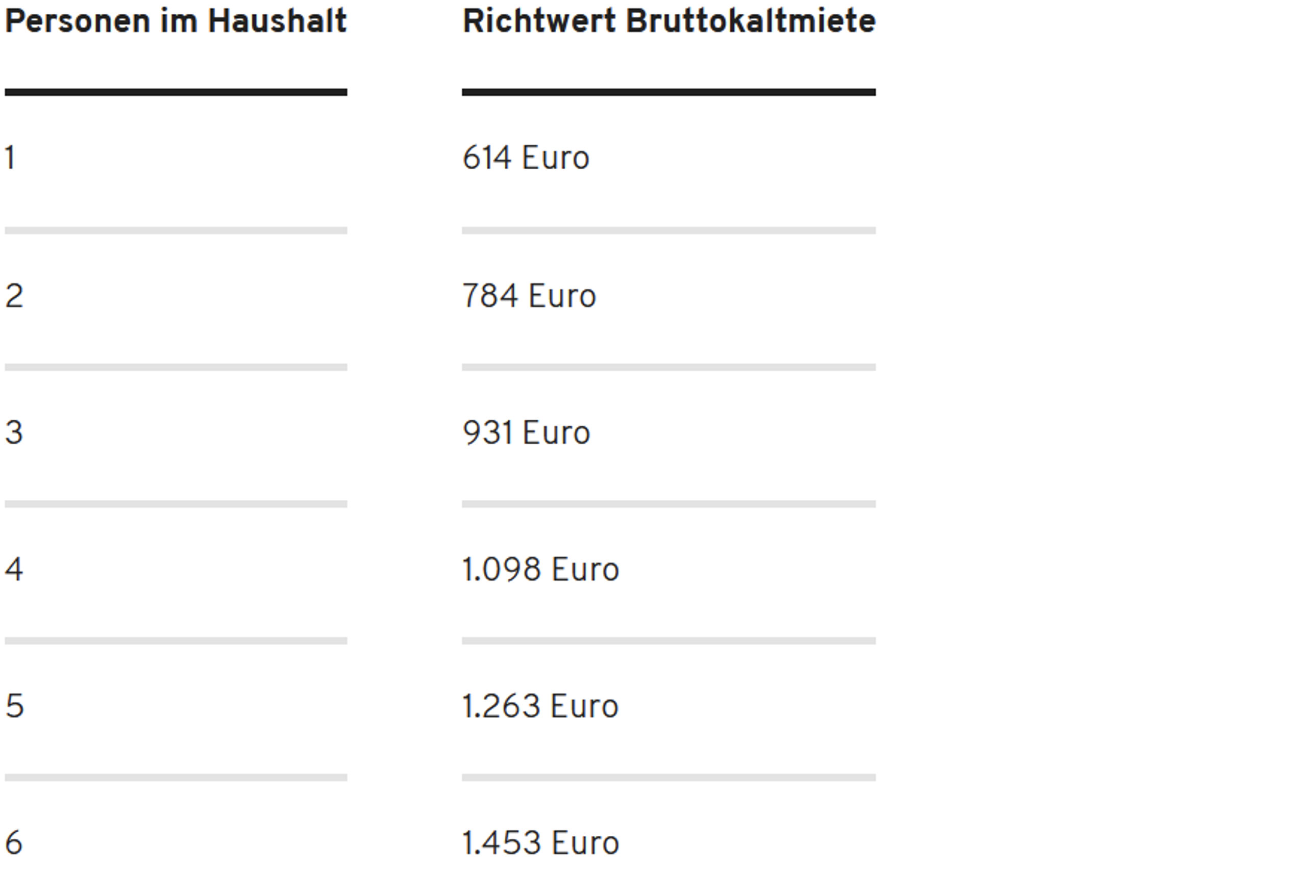 Richtwerte der angemessenen Bruttokaltmiete für Bonn
